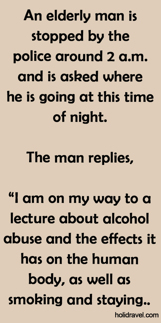 An elderly man is stopped by the police around 2 a.m. and is asked where he is going at this …