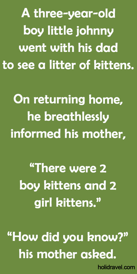 A three-year-old boy little johnny went with his dad to see a litter of kittens. On returning home, he breathlessly …