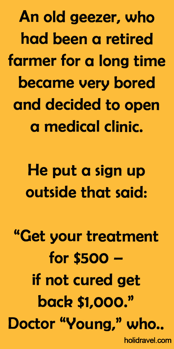 An old geezer, who had been a retired farmer for a long time became very bored and decided to open …