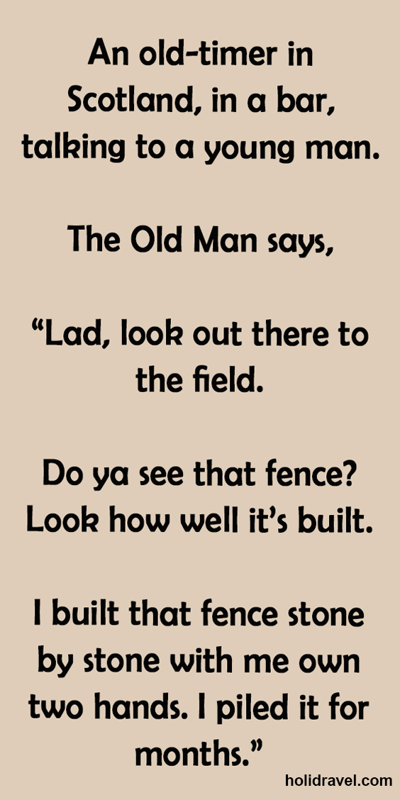 An old-timer in Scotland, in a bar, talking to a young man. The Old Man says, “Lad, look out there …