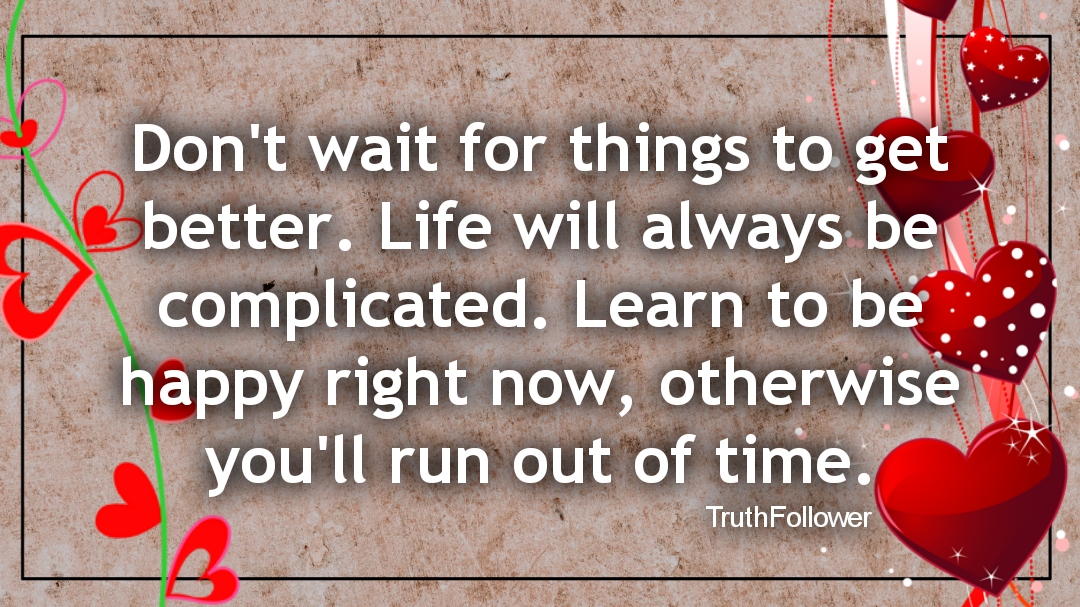 Don’t wait for things to get better. Life will always be complicated. Learn to be happy right now, otherwise you’ll run out of time.