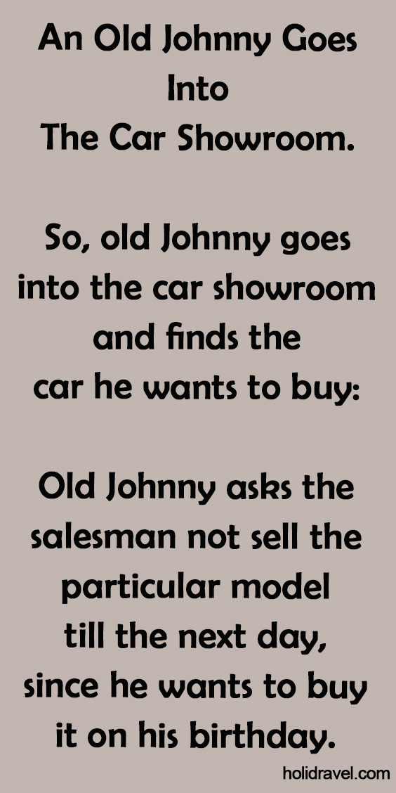 An Old Johnny Goes Into The Car Showroom. So, old Johnny goes into the car showroom and finds the car …