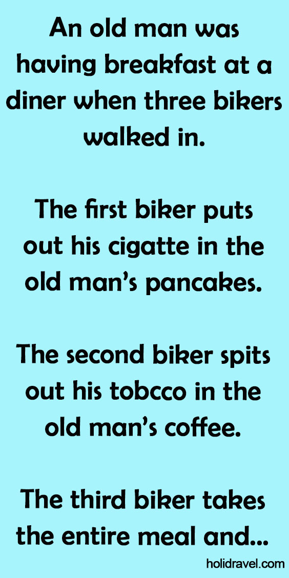 An old man was having breakfast at a diner when three bikers walked in. The first biker puts out his …