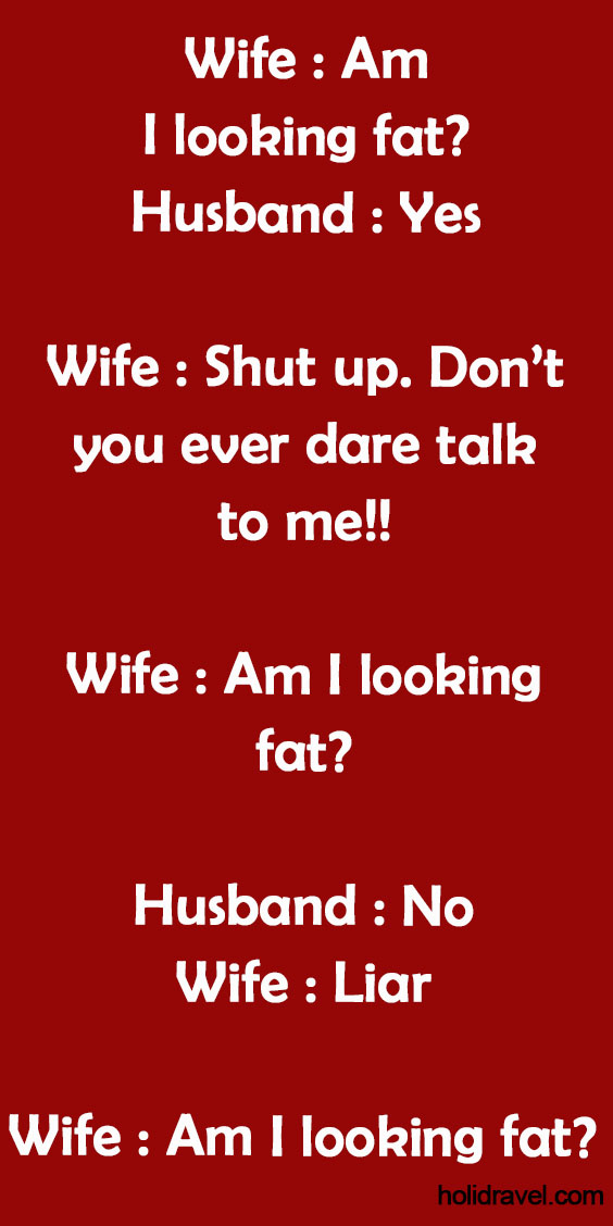 Wife : Am I looking fat? Husband : Yes Wife : Shut up. Don’t you ever dare talk to me!! …