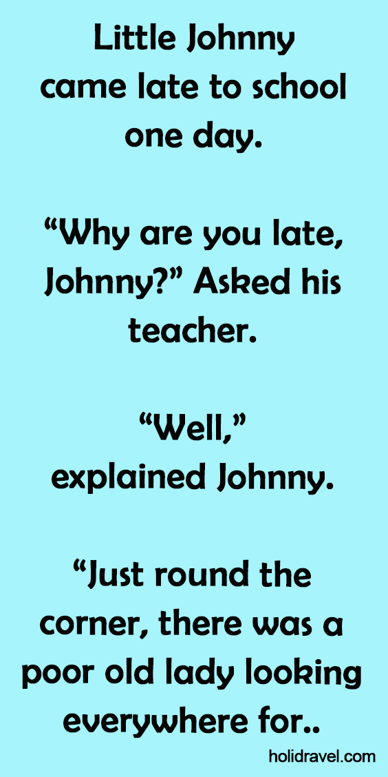 Little Johnny came late to school one day. “Why are you late, Johnny?” Asked his teacher. “Well,” explained Johnny. “Just …