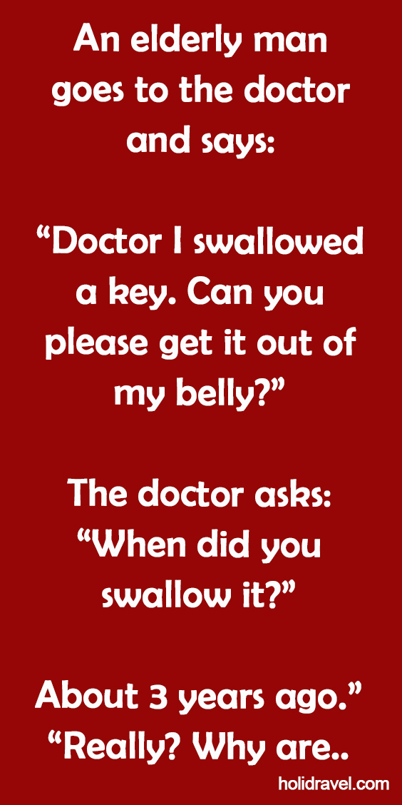 An elderly man goes to the doctor and says: “Doctor I swallowed a key. Can you please get it out …